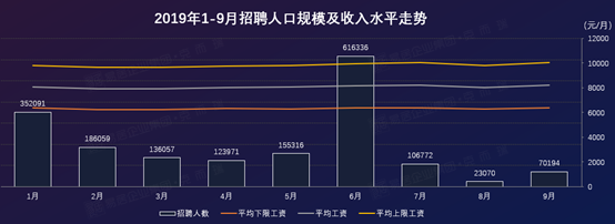 9月全市招聘规模有所回暖,薪资走势平稳,较上月出现略微上涨。