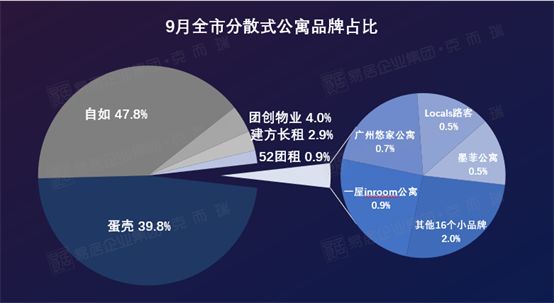 本市分散式公寓以自如、蛋壳这两大品牌为主,9月自如以47.8%的市场份额独占鳌头;从全市布局来看,蛋壳倾向租房需求旺盛区域,自如则在全市各区均有布局。