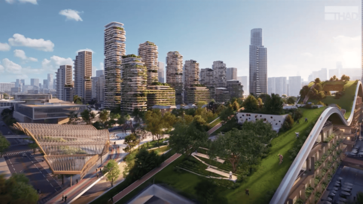 规划空间布局为打造中央绿轴,融入“公园+、体育+”理念,结合中部大面积开敞绿地,布局数字办公、未来社区、社交运动、商业消费等多样功能,创新利用地下空间结构,打造折叠式运动综合体。