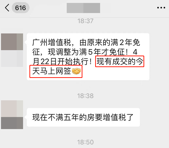 “刘小姐,广州楼市出新政,今晚要赶紧过来网签,不然明天要交多很多增值税了。”
