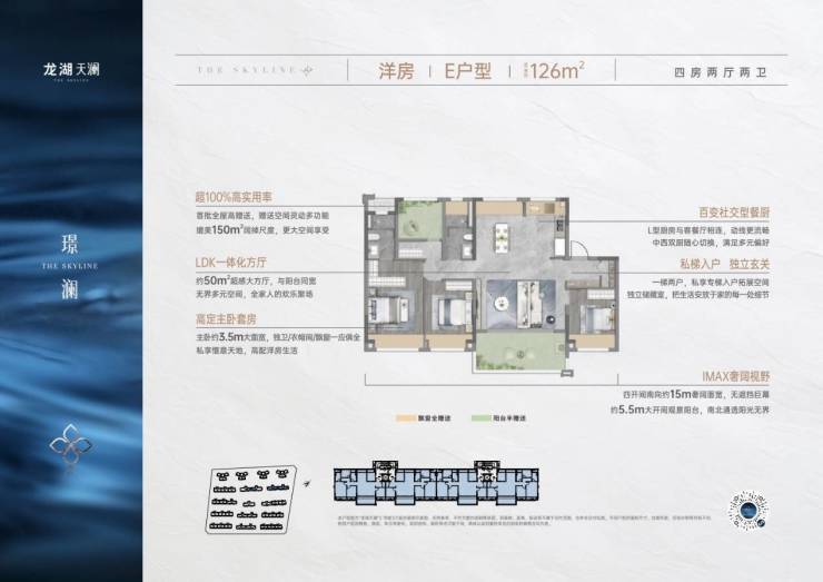 除了出挑的园林景观和配套,龙湖天澜在户型上也亮点十足,超100%得房率、南北通透、LDKG方厅、270°环幕景致……亮点不胜枚举。