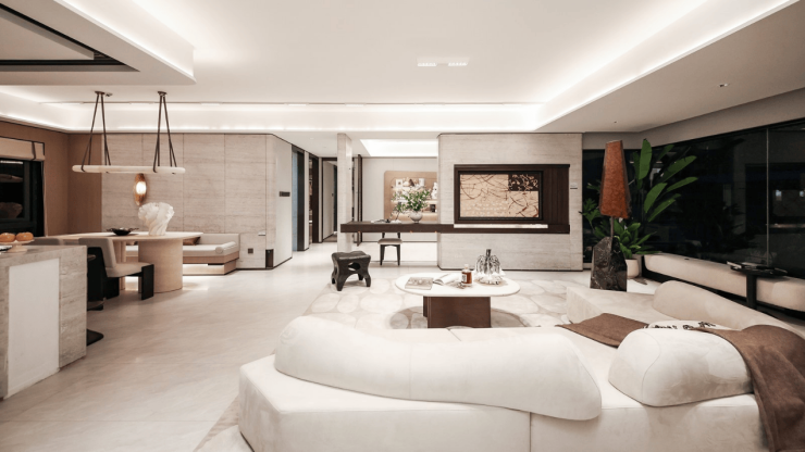 据悉,龙湖天澜首推建面约85-126㎡的3-4房产品,12月14日随实景示范区同步亮相的,是建面约126㎡的四房实体板房。该户型为龙湖天澜的王牌户型,超100%高实用率,可媲美市面上建面约150㎡大平层的阔绰尺度。尤其值得一提的是,该户型做到四开间朝南,打造约15m巨幅南向观景面,和LDKG一体化约50㎡超感大方厅,走进客厅,宽敞大气的感觉扑面。此外,该户型主卧室不仅配备衣帽间和独立卫浴,约3.5m的大面宽更是让人倍感奢华,居住舒适度无与伦比。