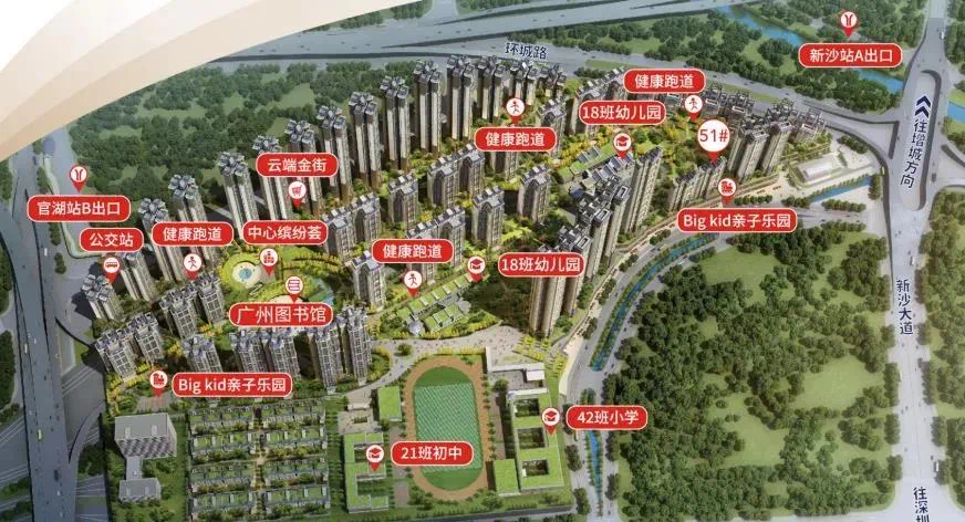 项目临近官湖地铁口,配建有18班幼儿园+18班幼儿园+42班小学+21班初中,其中小学、初中还是九年一贯制公办学校——华南师范大学附属新塘学校,受到不少置业者的青睐。