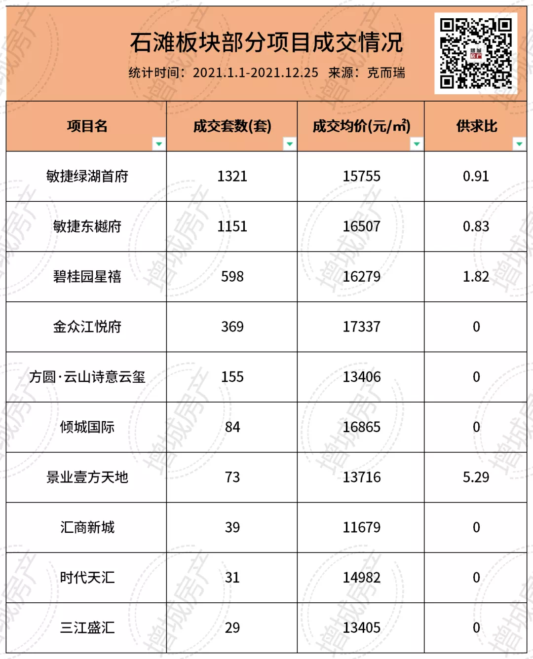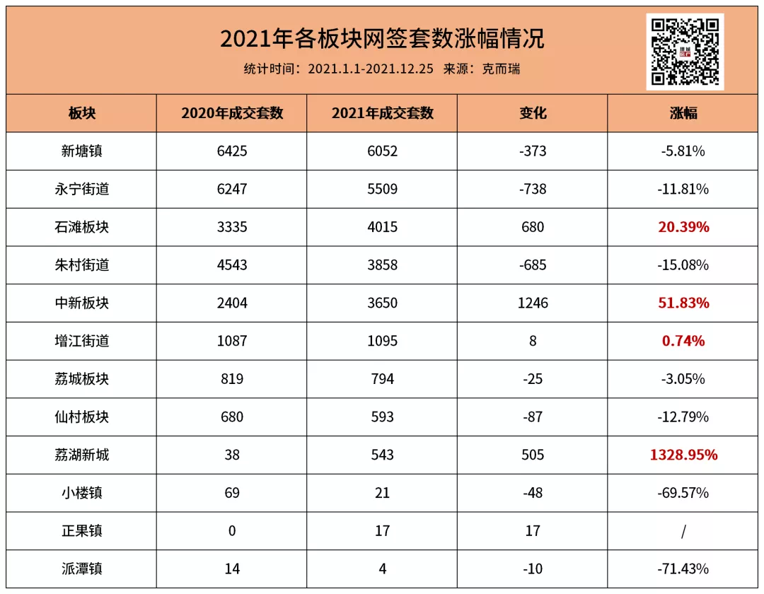但值得注意的是,2021年,只有4个板块的网签套数上涨了(石滩、中新、增江、荔湖板块)。