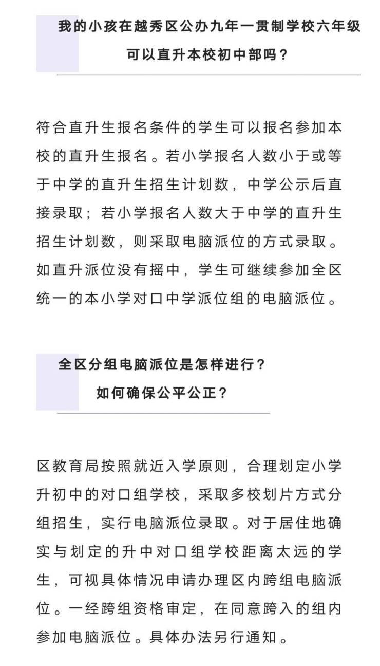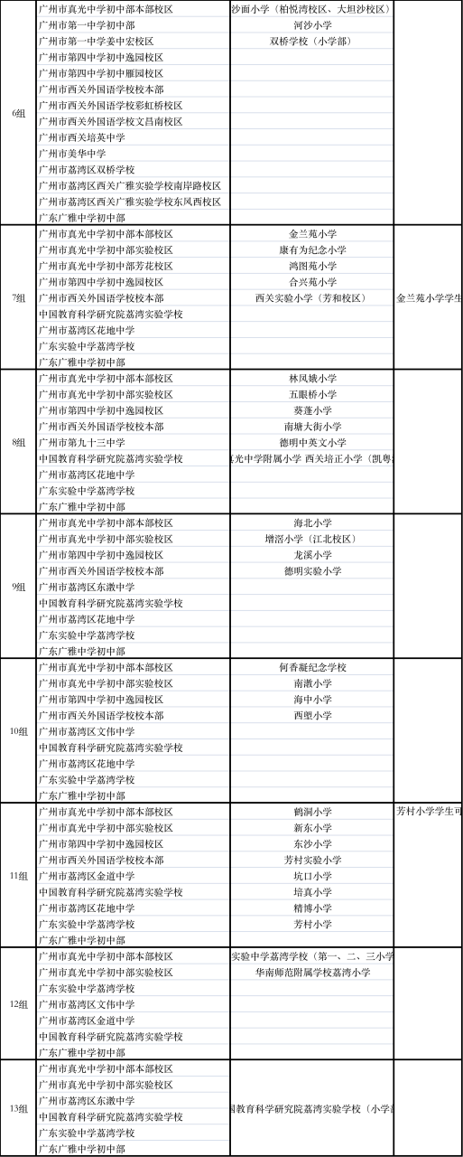 根据今年越秀区小升初工作中,部分学校有调整安排: