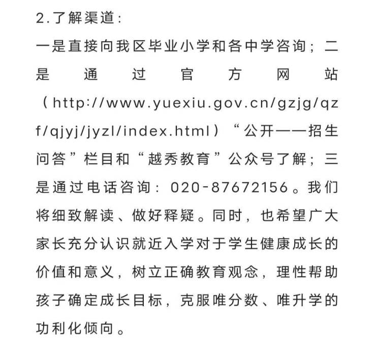最后,花都区教育局强调,区教育行政部门严肃查处招生违规行为,严肃治理校外培训机构、教育咨询公司、微信公众号负责人等社会第三方组织参与招生、虚假宣传等破坏教育生态行为。对出现广州市义务教育学校招生负面清单中违规招生行为的单位和个人,均应按规定严肃处理。