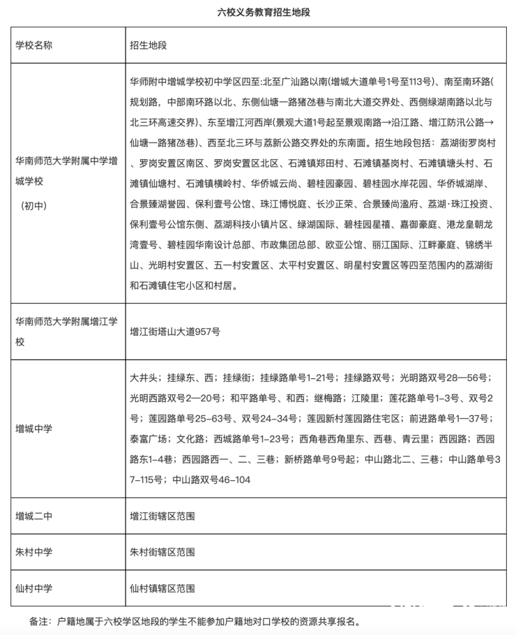 4月29日,增城区了公布2022年增城区义务教育学校招生工作方案。其中, 华南师范大学附属中学增城学校、华南师范大学附属增江学校、增城中学、增城二中、朱村中学、仙村中学等六所学校(以下简称“六校”),将面向全区学生资源共享招生。