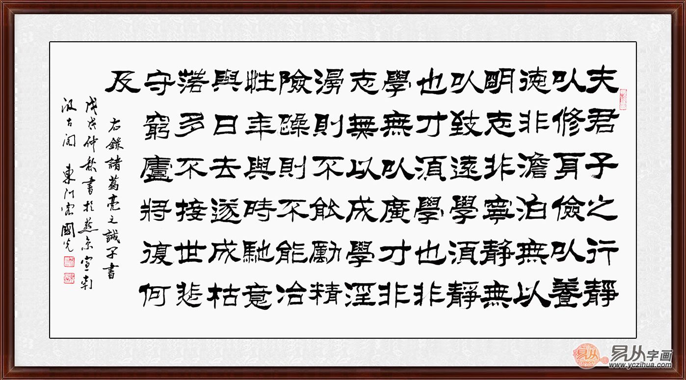 三国时蜀汉丞相诸葛亮被后人誉为“智慧之化身”,他的《诫子书》也可谓是一篇充满智慧之语的家训,是古代家训中的名作。文章阐述修身养性、治学做人的深刻道理,读来发人深省。它也可以看作是诸葛亮对其一生的总结,后来更成为修身立志的名篇。中“非澹泊无以明志,非宁静无以致远”教育孩子,要“澹泊”自守,“宁静”自处,鼓励孩子勤学励志,从澹泊和宁静的自身修养上狠下功夫。 “非学无以广才,非志无以成学 ”忠告孩子,不努力学习,就不能够增加自己的才干。但学习的进程中,决心和毅力非常重要,缺少了意志力,就会中途而废。