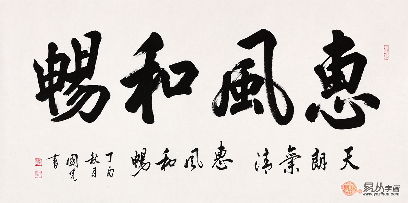 于国光书法作品《惠风和畅》笔势矫健灵活舒展,这四个大字是作者一气呵成的,虚处更犹如一屡春风轻轻拂过,像杨柳的枝条随风轻轻摇摆,细品之时,让人似乎真的能看到并感受到“是日也,天朗气清,惠风和畅”。人们之所以喜欢书法惠风和畅,是因为四个字中包涵着五大祝愿一、祈望生意能如沐三春风调雨顺,财源广进绵绵不绝生生不息,如和风一样令人舒畅。祝愿自己的人生和商路、仕途,能和顺兴盛、平顺发达,生活如沐春风舒心惬意。祝愿自己,做人要有惠兰风骨并气度如兰,内心谦和心胸豁达,严于律己宽于待人,有礼有节谦恭平和,永远保持谦谦君子的大家风范。惠,有贤惠之意。惠风和畅的另一层意思就是:祝愿自己的妻子能贤惠,温柔贤惠如春风,知冷知热解人意,家庭生活如春天般美好,永享幸福安宁,一家人过得和和美美舒心惬意。待客要如春风扑面,嘘寒问暖和蔼可亲,对于经商立业要惠及于民和让利于客,适时适当对顾客施以小恩小惠,欲想取之必先予之,才能稳定客源招揽回头客。