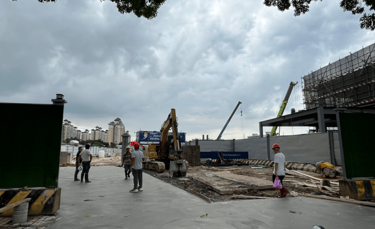 小编火速去项目现场围观了下,到达工地大概一点多,陆续有工人入场上班,工地也正在如火如荼的施工中。