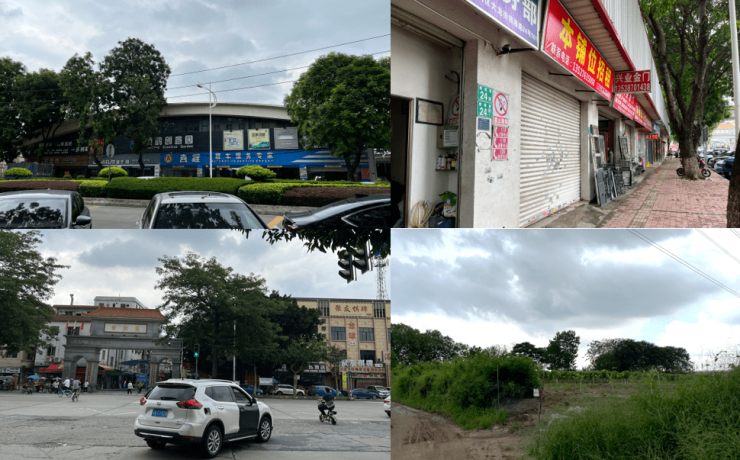 面向项目往右走,商铺以建材、修车厂、杂货铺为主,往前400米左右为傍江东村,多是低矮建筑和自建房,业态较为零散,面貌比较倾向“城乡结合部”之感。