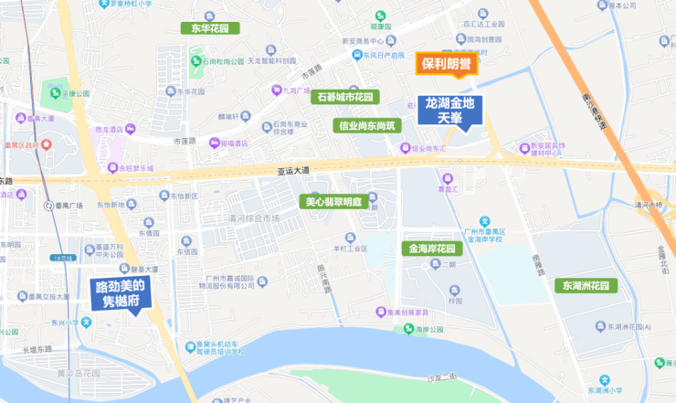 保利朗誉位置在于番禺石碁镇,亚运大道以北,傍雁路以西。