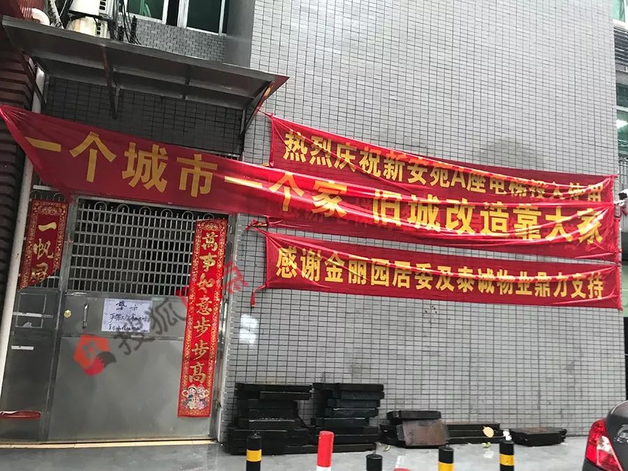 另由于这些社区多建设于90年代末,至今已有逾20年的历史,小区基础设施薄弱,居住环境较差,绿化覆盖率低,车位不足,且是典型的楼梯楼。自2018年至今,经过业主的多番努力,终于圆电梯梦。在新景楼,我们还可看到加装电梯工作仍在进行中。对此,一新景楼居民表示,到时如果拆迁的话,肯定也是按电梯楼赔偿,并不会损失多少。