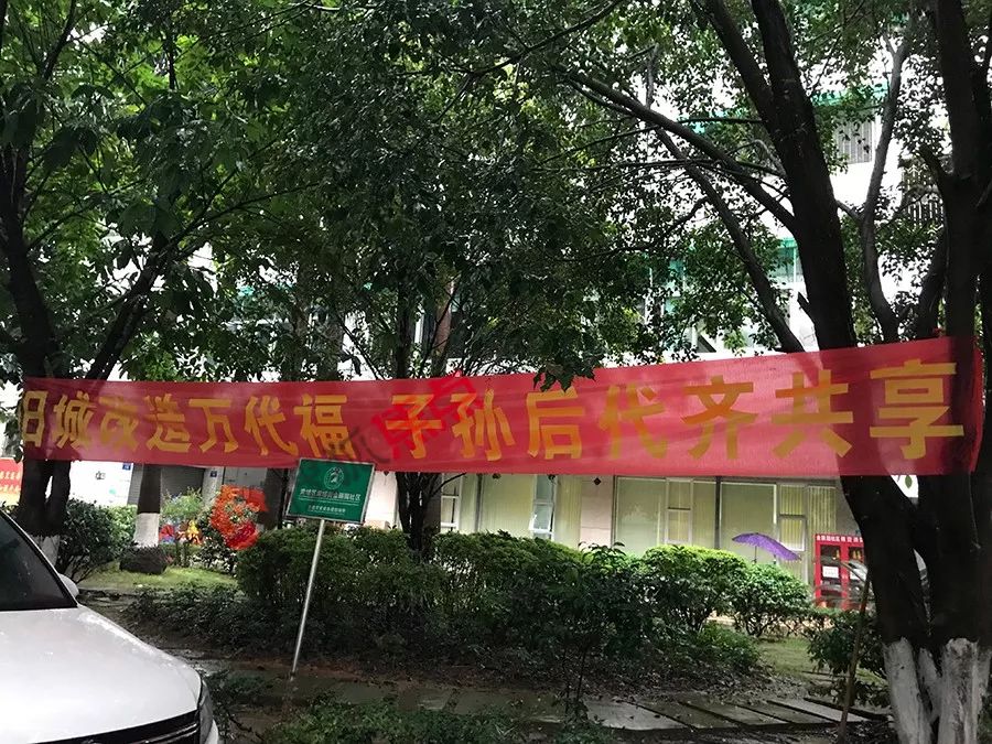 据血拼小助理近日实踩发现,相关工作组人员已陆续进场,着手发放宣传册、意愿征询票等工作。在金丽园小区、新景楼、新安苑等区域随处可见悬挂有关于旧城改造的宣传横幅等。