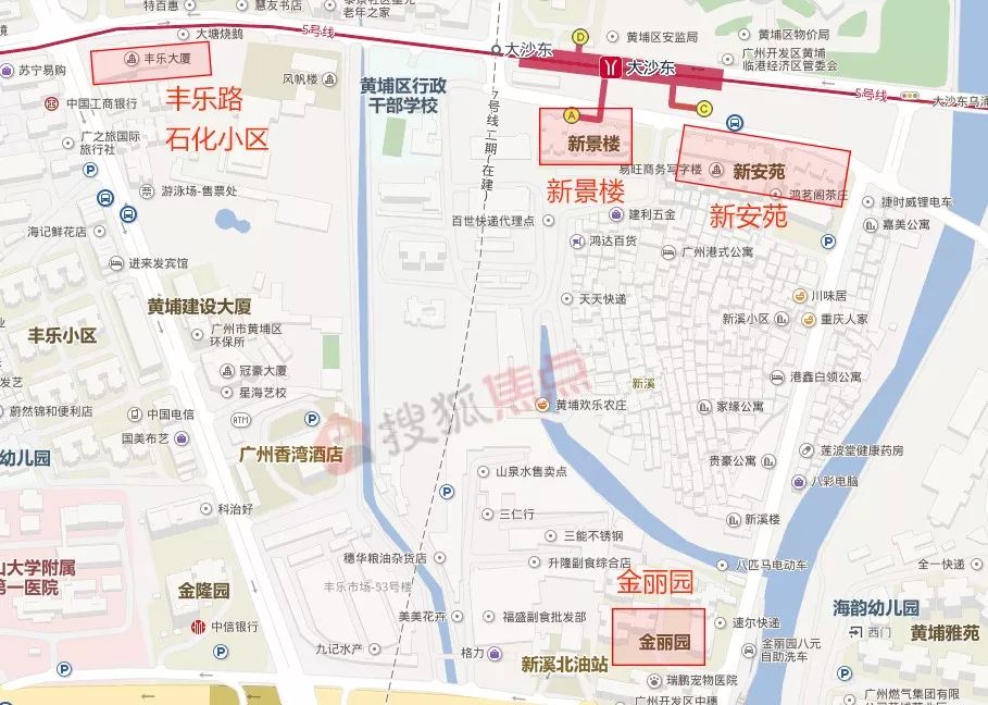 新安苑、新景楼临近地铁五号线大沙东站、广新路口公交站。金丽园则离地铁五号线大沙东站则较远,步行约需15分钟。但这些社区整体环境不算特别高大上,但周边各类生活配套均较为齐全,便利店、超市、银行、各类小吃店等应有尽有,生活气息浓厚。