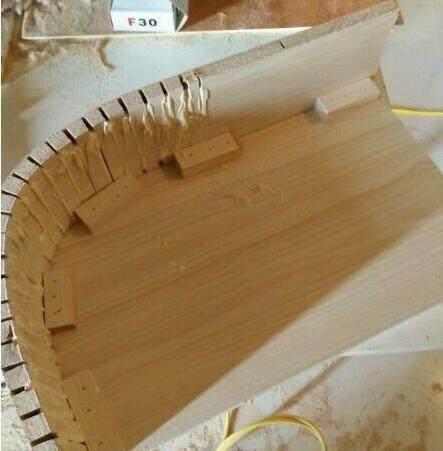 很多人不知道木匠是如何做圆的东西,带你看看圆形的细节图到底是如何做出来的,小圆角用生态板锯多条缝但是不能锯断,做圆角较好的板是密度板,其次石膏板和三厘板。