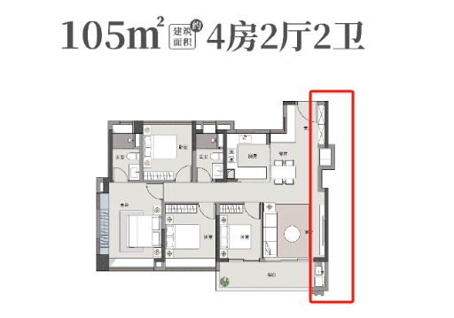 建面约105平四房户型,则是二胎家庭/三代同堂的进阶之选!