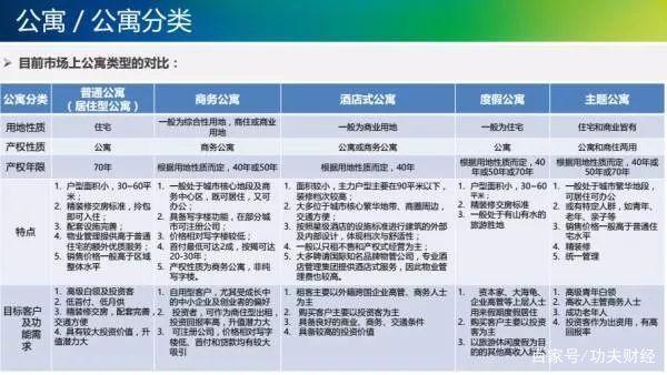 公寓式住宅本质是住宅,可以减免高额税费,所以是优于商住公寓的,但由于其布局问题是次于住宅的,并不是较佳的投资品。但是有一种在金融中心的、无其他住宅竞争的公寓式住宅是可以投资的。
