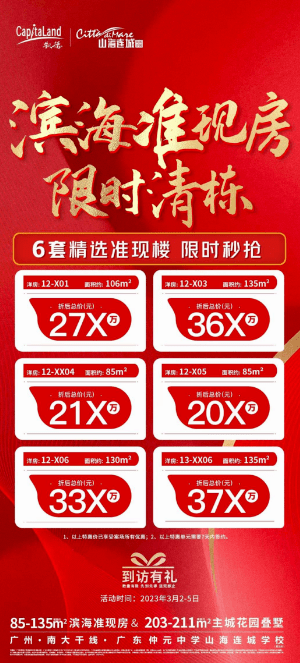 项目拟于3月4日开盘销售,推建面约73-105㎡纯四房。值得关注的是,即日起至3月4日,到访营销中心即可免费领油米,参与认筹还可享99折优惠。开盘当天,到访项目还可参与抽奖活动,奖品是3天2夜国内游哦,含往返机票住宿,你心动没?