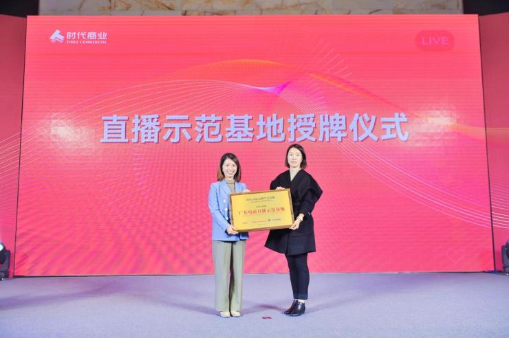 本次大会所在的国际单位时尚科技园,即是时代商业在直播电商产业集群运营的代表作。会上,广东省网商协会执行副会长兼秘书长刘飞娜授予国际单位时尚科技园“广东电商直播示范基地”称号。刘秘书长表示,国际单位时尚科技园从一个老旧的厂区发展至今,在产业链聚合方面实现了突破性进展,聚集了辛选集团、荟赞产业等大量优秀电商直播企业,是白云区产业升级发展的代表与缩影。此次授牌是对国际单位时尚科技园为广东直播电商行业健康发展树立标杆,起到带头引领作用表示肯定。