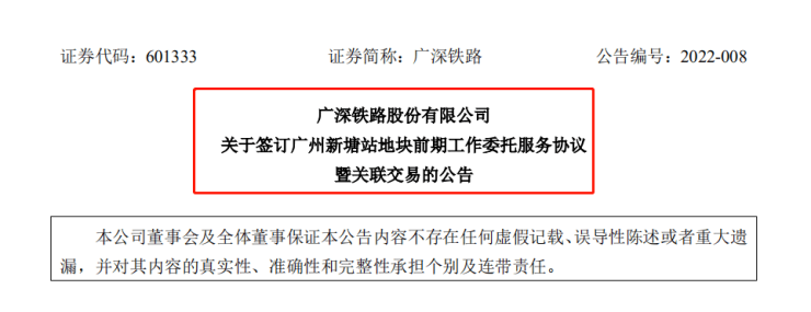 近日,广深铁路股份有限公司发布了一则关于签订广州新塘站地块前期工作委托服务协议暨关联交易的公告。