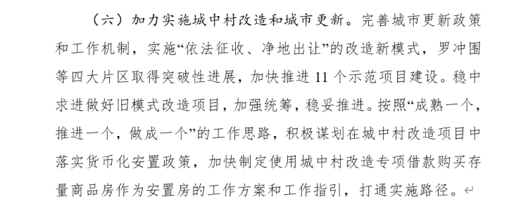通过城中村改造和城市更新,优化城市空间布局,提升城市功能,改善居民居住环境,推动促进房地产市场的健康发展。