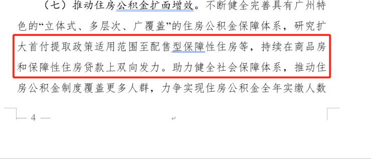 《计划》还明确表示,为更好的满足新市民、青年人租住需求,进一步推动保障房发展,目前广州正在研究扩大公积金首付提取政策适用范围至配售型保障性住房等,持续在商品房和保障性住房贷款上双向发力。