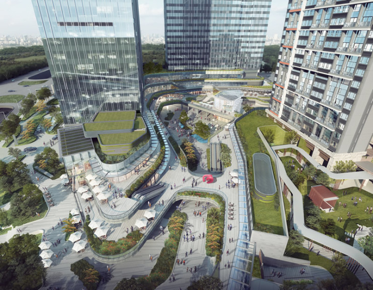 广汇新世界金融中心、新世界广汇尊府项目荟萃出行、居住、商务、商业、社交、运动、休闲等需求的多元化生活场景,为城市精英圈层匠造广州东部中心高品质生活、高端消费、商务金融、购物娱乐中心圈层,打造一种全新的生活方式。并通过“空中连廊”,让项目不同业态之间产生融合,并且与城市连接,与总部经济区其他综合体项目融合,与三大功能区产生融合,城市、生态、居者进行多维度、多层次、多系统的连接,激赏美好,畅享无限。