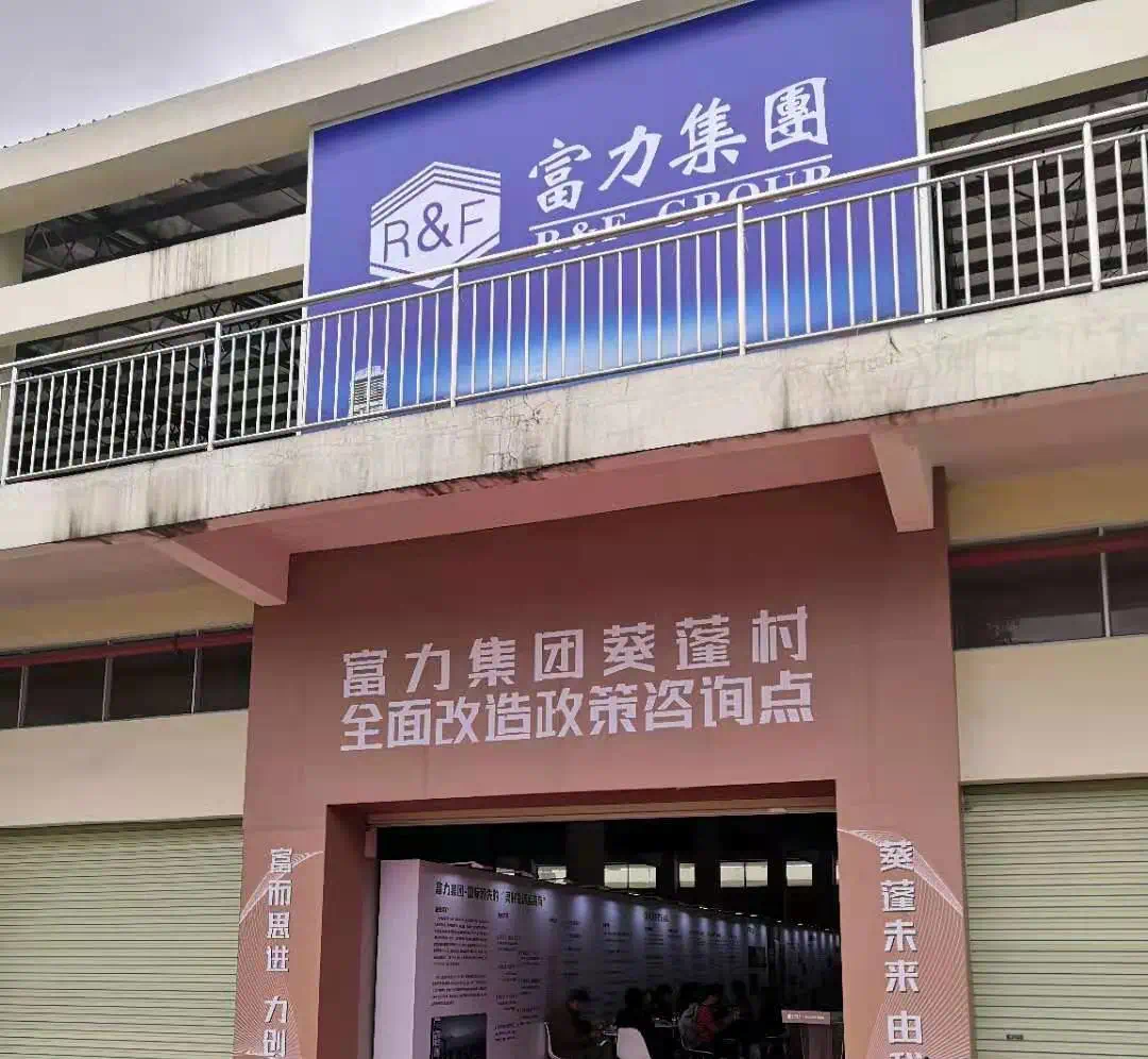 这是保利、富力、招商三大旧改巨头争夺葵蓬村旧改的宣传标语,“火药味”十足。