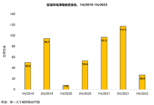 租赁市场受多重因素影响放缓,区域半年度净吸纳量显著下降