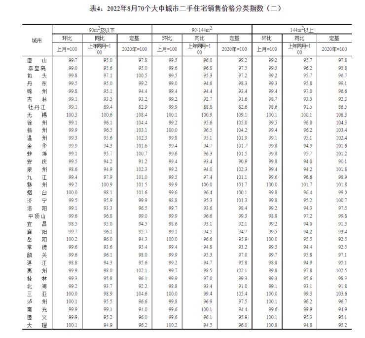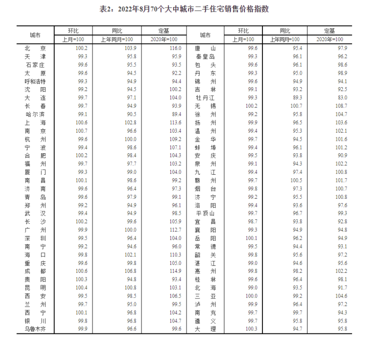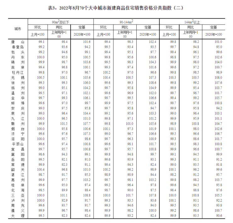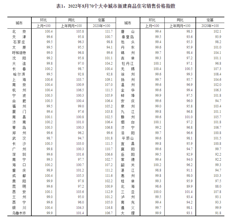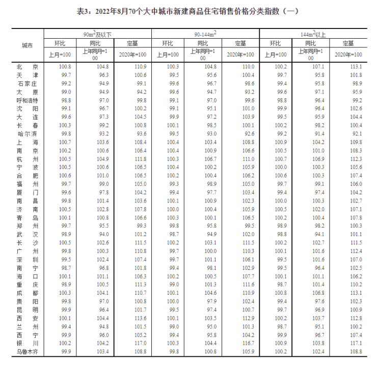 国家统计局城市司首席统计师绳国庆解读数据表示,2022年8月份,70个大中城市中商品住宅销售价格下降城市个数有所增加,各线城市涨幅回落或降幅扩大。