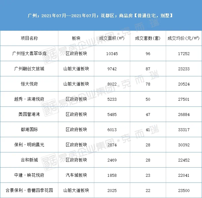 附2021年1-7月花都区成交TOP10榜单: