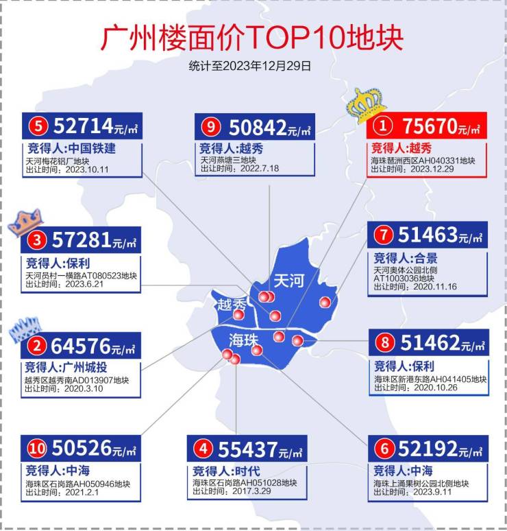 尤其是新登上楼面价NO.1宝座的琶洲西区地块,出让时经历长达4小时的拉锯,最终在85轮争夺后,以75670元/㎡成交。(未扣除配建)