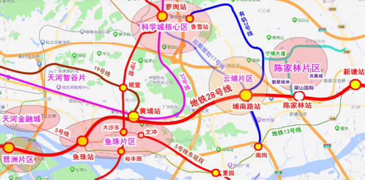 两个片区开发的难易度,随着28号线的设站,将加剧陈家林对黄埔购买力的虹吸。