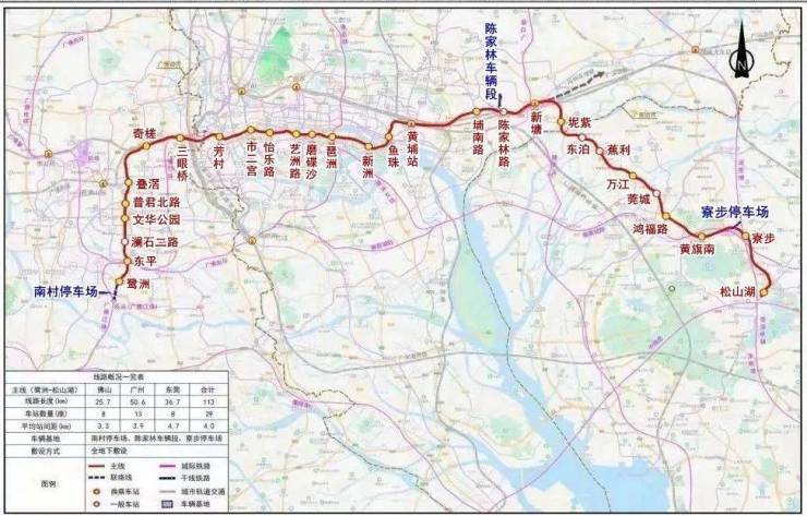 清单显示,28号线全长约113公里,其中广州段约50.6公里,设站13座,建设期限为2023-2029年,工期6年。