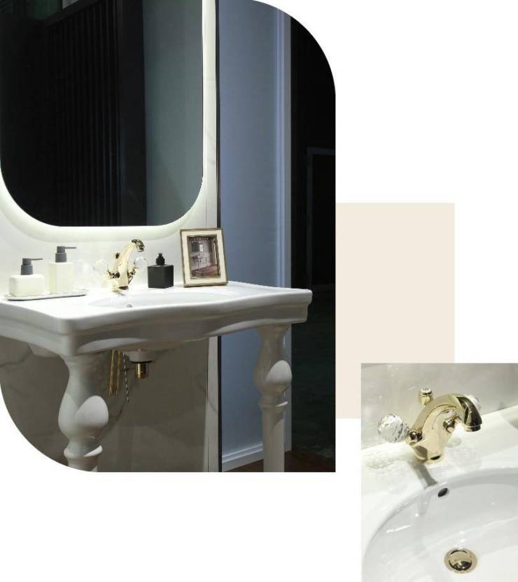 以KLUDI 1926为代表的法式奢华美学,汲取古典主义精髓,线条优雅轻盈,与借鉴凡尔赛宫廷柱廊的WASHINGTON系列台盆搭配,相得益彰,展现经久不衰的典雅轻奢艺术气质。