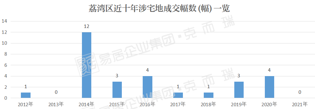 小编说荔湾区在发力是有准确的数据佐证的,列出近十年数据,自2012年起,除2013年无成交外,十年间荔湾区合计成交出让29宗涉宅地。