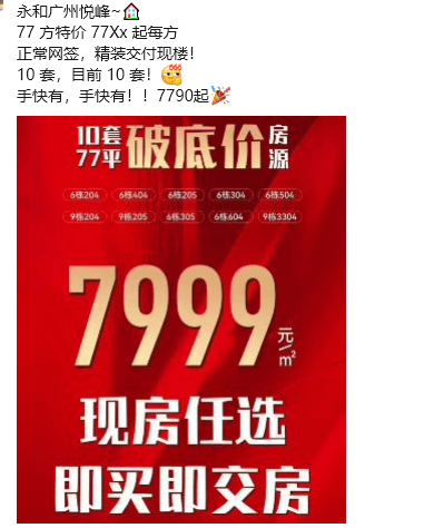 永宁板块的广州悦峰,直接7字头起,单价跌破片区最低。