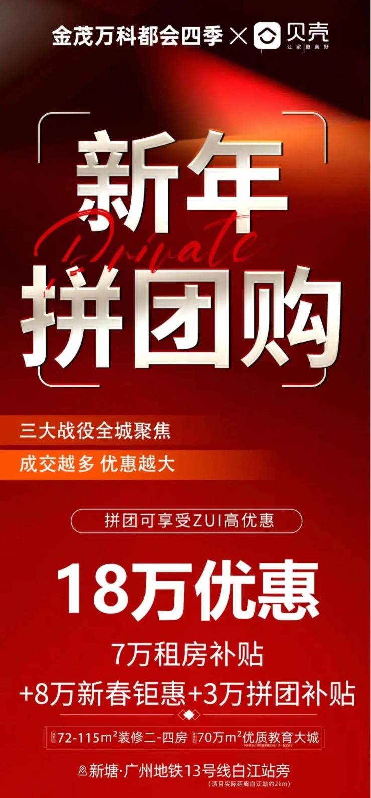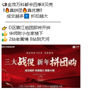 首先是去年增城的销冠,金茂万科都会四季,也正式联手贝壳推出了拼团购。