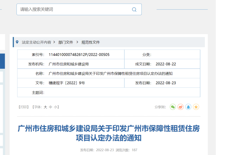 广州市住房和城乡建设局挂网发布《关于印发广州市保障性租赁住房项目认定办法的通知》(下称《通知》),对保障性租赁住房认定条件予以明确,涉及六大标准,认定成功后可享受多条政策优惠。