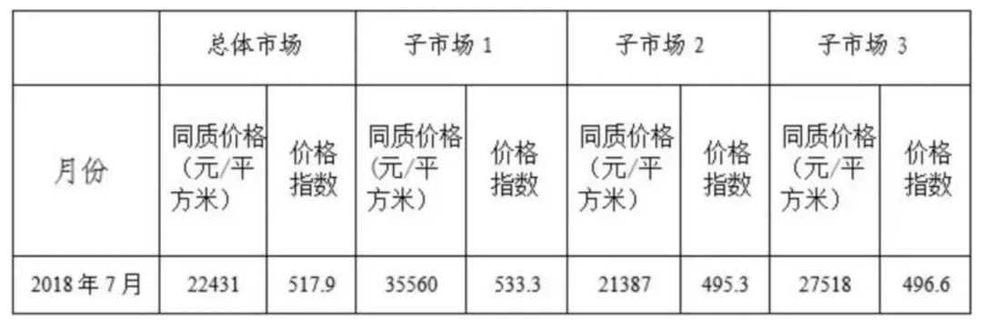 2018年7月广州市新建商品住宅城房指数计算结果显示,总体市场、子市场1和子市场2的同质价格比2018年6月有所上升,升幅分别为3.34%、2.34%和4.10%;子市场3的同质价格比2018年6月有所下降,降幅为3.44%。