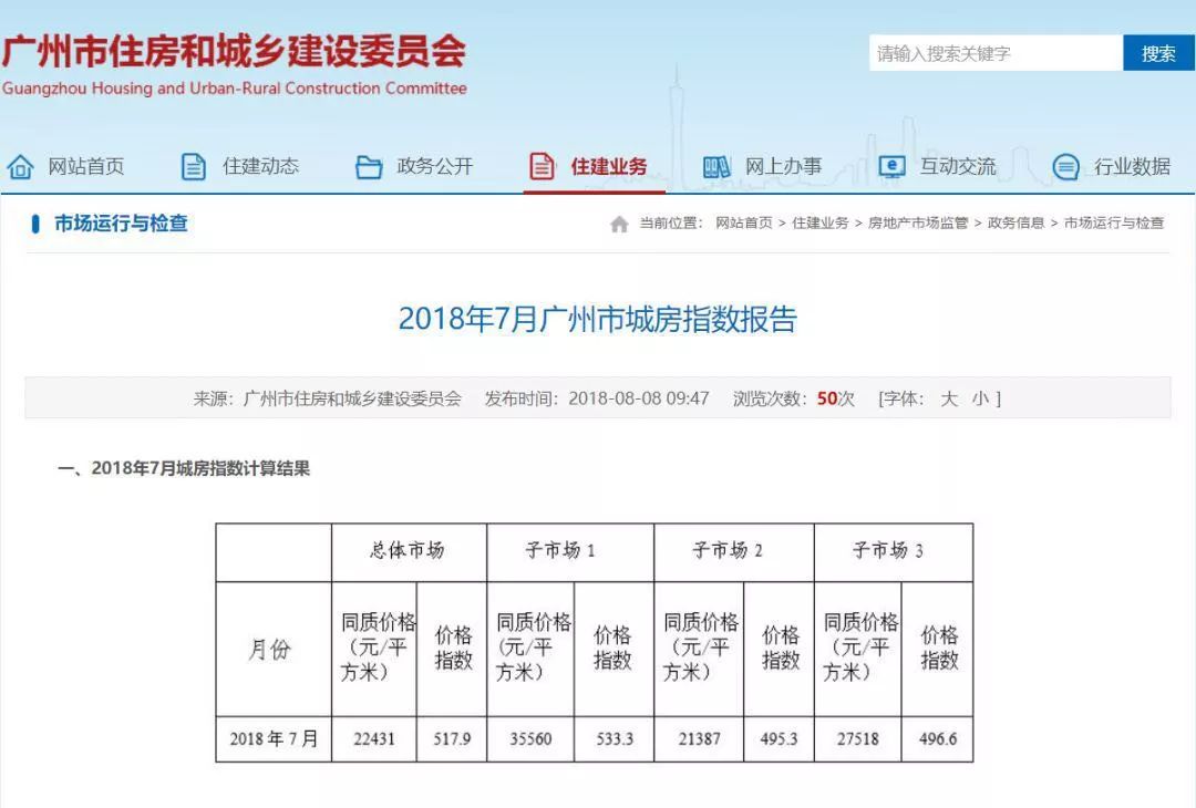 时隔近一个月,阳光家缘网签数据终于更新了!2018年8月8日,广州住建委官方公布7月广州市城房指数报告。