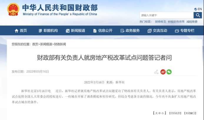 财政部明确,房地产税改革试点依照全国人大常委会的授权进行,一些城市开展了调查摸底和初步研究,但综合考虑各方面的情况,今年内不具备扩大房地产税改革试点城市的条件。