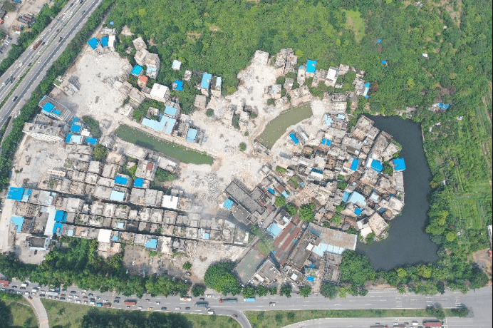 在2020年,黄埔区出台《黄埔区 广州开发区决胜三年完成旧村拆迁攻坚任务行动方案》及作战蓝图,提出力争两年、确保三年完成全区66条旧村改造拆迁任务。华甫荷村也从此改造工作提速,目前村民房屋签约率达97.53%、拆卸率已达96.36%,全村几近拆平。