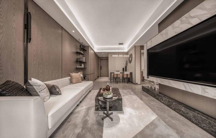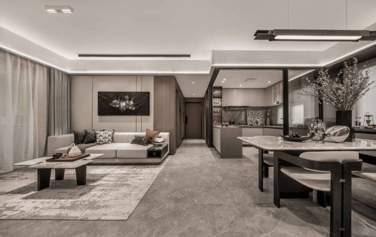 建面约116㎡ 270°环幕观景四房丨采用当下壕宅流行的LDKG厅无边界设计,集合会客、休闲等多元社交功能,堪称私董的社交厅;同时整体采光面可惊人达到15米,搭配约6米通长大阳台,可把窗外园林景观尽收眼底。