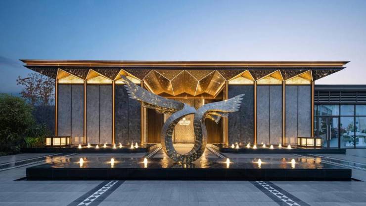 龙湖天著汲取深圳湾TOP1级别安达仕酒店的灵感,打造唯一轻奢园林。近千万巨资打造宽约23.5米、高约6.5米星空府门,尊享归家礼序。与此同时创新打造一轴三进两园酒店式显赫规制,更引入博物馆藏级大师雕塑、哥伦比亚祖母绿景墙、全冠移植朴树等,让景观不止于美景,更引领生活方式。