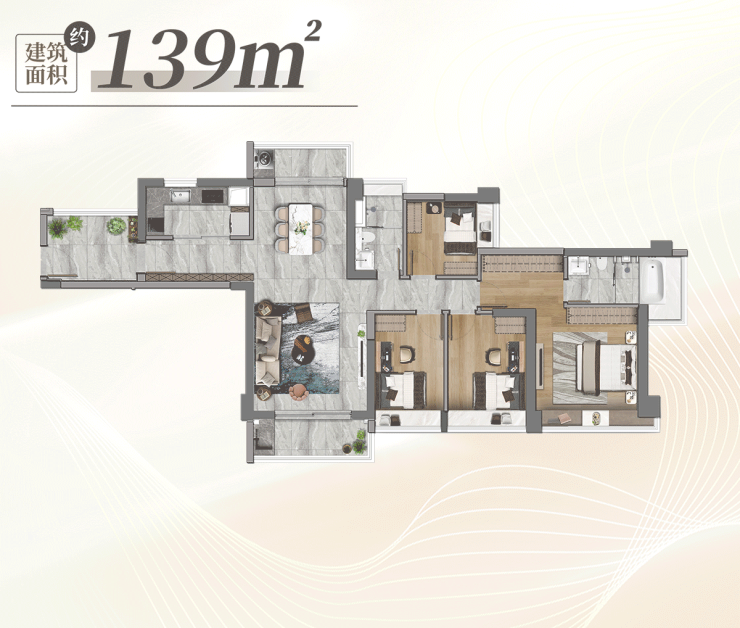 白鹅潭高品质晋阶之选,压轴上阵的建面约139㎡江景大平层。