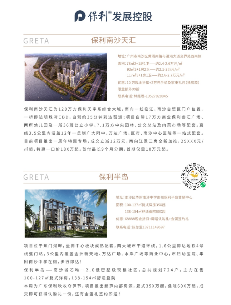 保利发展控股番南区域副总经理王南南介绍,保利南沙天汇,继承“琶洲保利天悦”的造城天赋,打造集品质住宅、商务办公、综合商业、创意办公及教育等配套于一体的百万方滨江天字系大城,再造“天字系”传奇。以自身过硬的品牌实力、地段及产品优势一次又一次地通过了市场的考验。