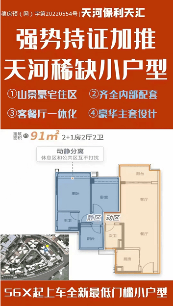 天河智慧城网红盘保利天汇前段时间一直主推大户型,准入门槛跃升。而本周将加推91㎡2+1房2厅2卫户型,56X万即可上车天河,刚需不容错过。