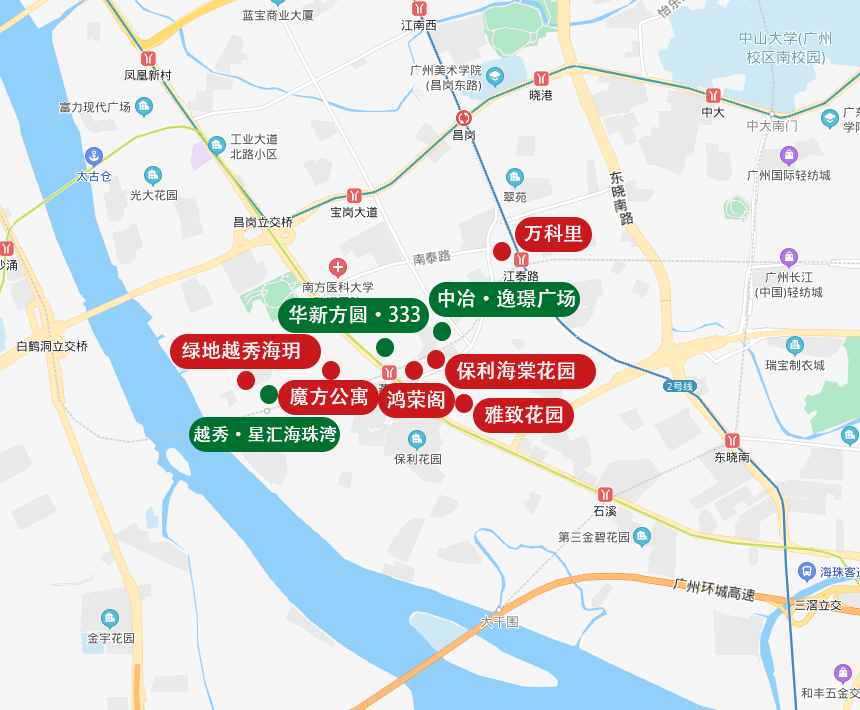 摊开地图,我们不难发现,华新方圆·333正位于海珠区工业大道,临近广佛地铁燕岗站D出口。
